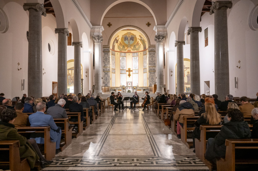 A zeneszerető közönség megtöltötte a bencések római főtemplomát, ahol Hortobágyi T. Cirill pannonhalmi főapát mondott köszöntőt, aki egy ökumenikus küldöttség vezetőjeként érkezett szentévi zarándoklatra az Örök Városba december 9-én. Az ünnepi koncerten jelen volt Törő András, a Pápai Magyar Intézet (PMI) rektora, Fehérváry Jákó OSB, a római Szent Anzelm Pápai Egyetem rektora és Vértesaljai László SJ, a Vatikáni Rádió magyar adásának vezetője.